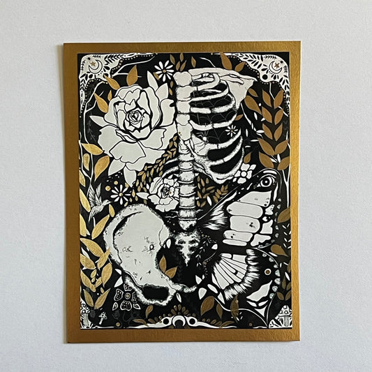 Each painting is hand-painted using Acrylic paint, Ink, and Gold Leafing.